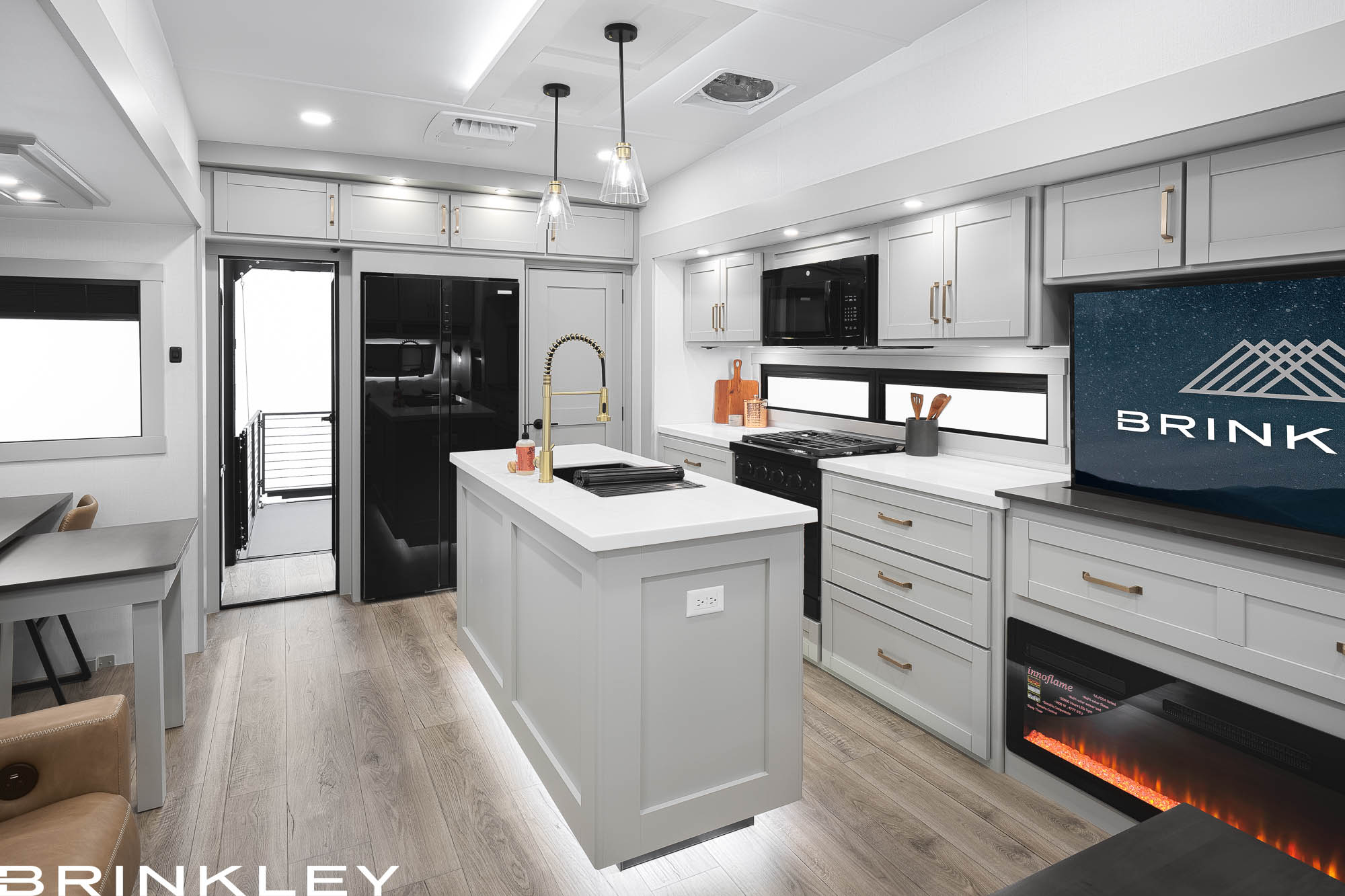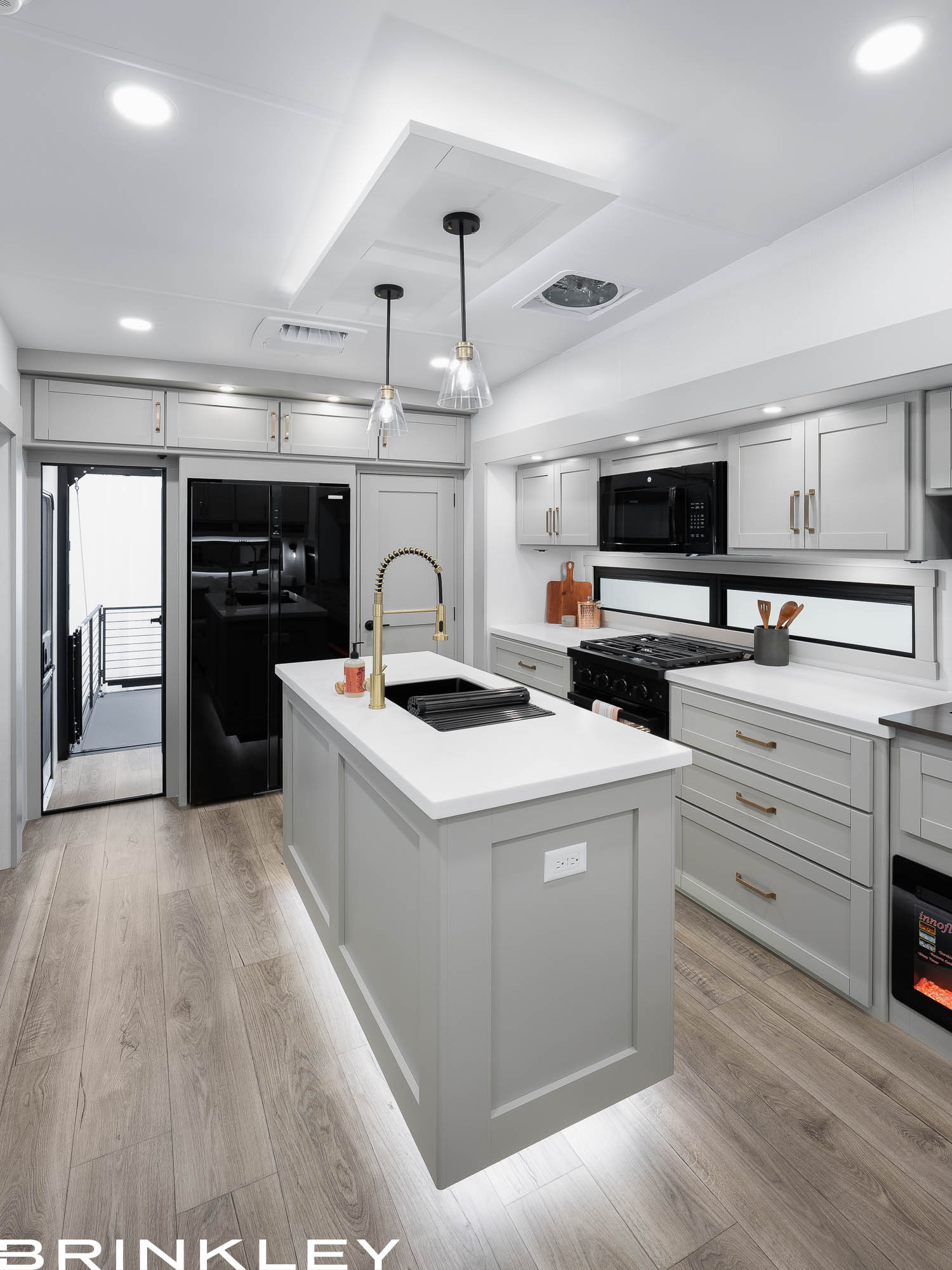 The Brinkley Model Z 3420 - 39' 11" Mid-Sized Luxury Fifth Wheel is in a class of its own… Designed as an entertainer’s dream, this floorplan features a rear patio, large outdoor kitchen, and a spacious walkthrough bath. With an automotive exterior and residential interior, it delivers NO COMPROMISE. Whether you're a weekend camper or full-time RVer, Model Z offers features that elevate the RV experience - like 7k axles, 17.5” H-rated Cooper tires, flush floor slides, and a class-leading 79.5" bed & bath interior height. The Z 3420 redefines luxury and livability in a mid-size fifth wheel.